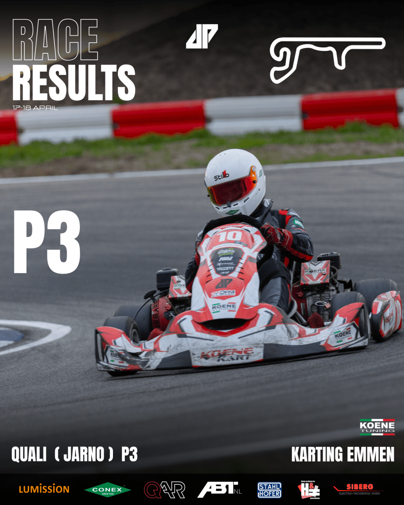De langste race van dit seizoen was net zoals normaal op Karting Emmen. Deze race reed ik met twee andere teamgenoten dan normaal, ik reed namelijk deze race met Jarno Hermans en Rick Korporaal. Jarno reed de kwalificatie en zette ons neer op een goede derde plek. De hele race reden we mee voor het podium. Uiteindelijk kwamen we net te kort en waren we p4 gefinisht. Helaas door een onterechte diskwalificatie van het eerste team van Koene, zijn we uiteindelijk opgeschoven naar een derde plek.